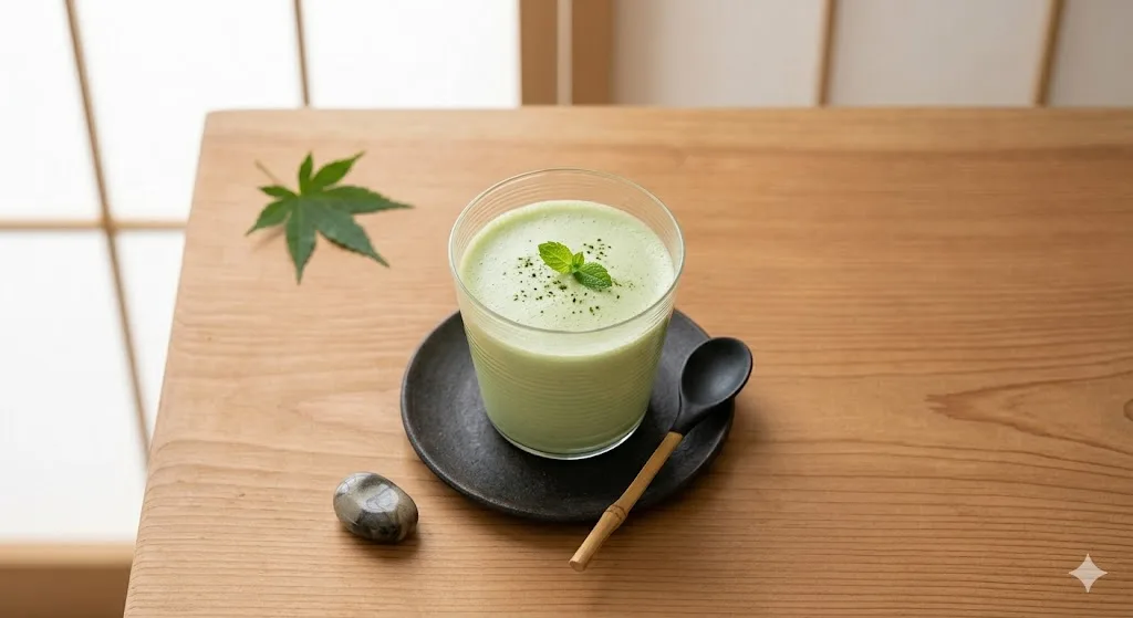 1 frozen banana, 1 teaspoon high-quality matcha powder, 1 cup coconut milk. Blend smooth. Matcha contains L-theanine, an amino acid that moderates the stimulating effects of caffeine and produces what practitioners describe as “alert calm” — focused energy without anxiety or crash. Ceremonial-grade matcha (Ippodo or Encha, both around $25 to $30 for 30g) tastes noticeably smoother and less bitter than culinary grade. For smoothies, culinary grade is an acceptable compromise at around $12 per 30g.