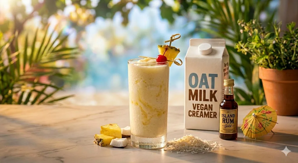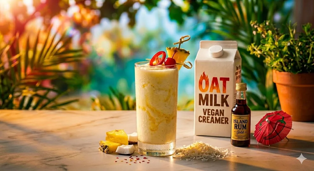 1.5 cups frozen pineapple, 1/2 cup coconut cream (not coconut milk — the thicker version), juice of 1 lime. Blend until smooth. Coconut cream (Chaokoh brand is excellent and available at most Asian grocery stores for around $2 per can) creates a richness that makes this feel like an indulgent drink rather than a health choice. It’s both, which is the best possible outcome.