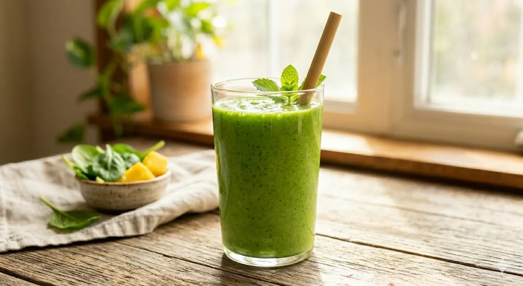 1.5 cups frozen pineapple, 1 large handful of fresh spinach, 1.5 cups coconut water. Blend on high for 60 full seconds. The pineapple is doing two jobs here: it flavors the smoothie and its natural enzymes (bromelain) help break down the spinach cell walls during blending, which improves nutrient absorption. The result is bright green, completely tropical-tasting, and contains no detectable green vegetable flavor whatsoever. This is the recipe I use to convert green smoothie skeptics.