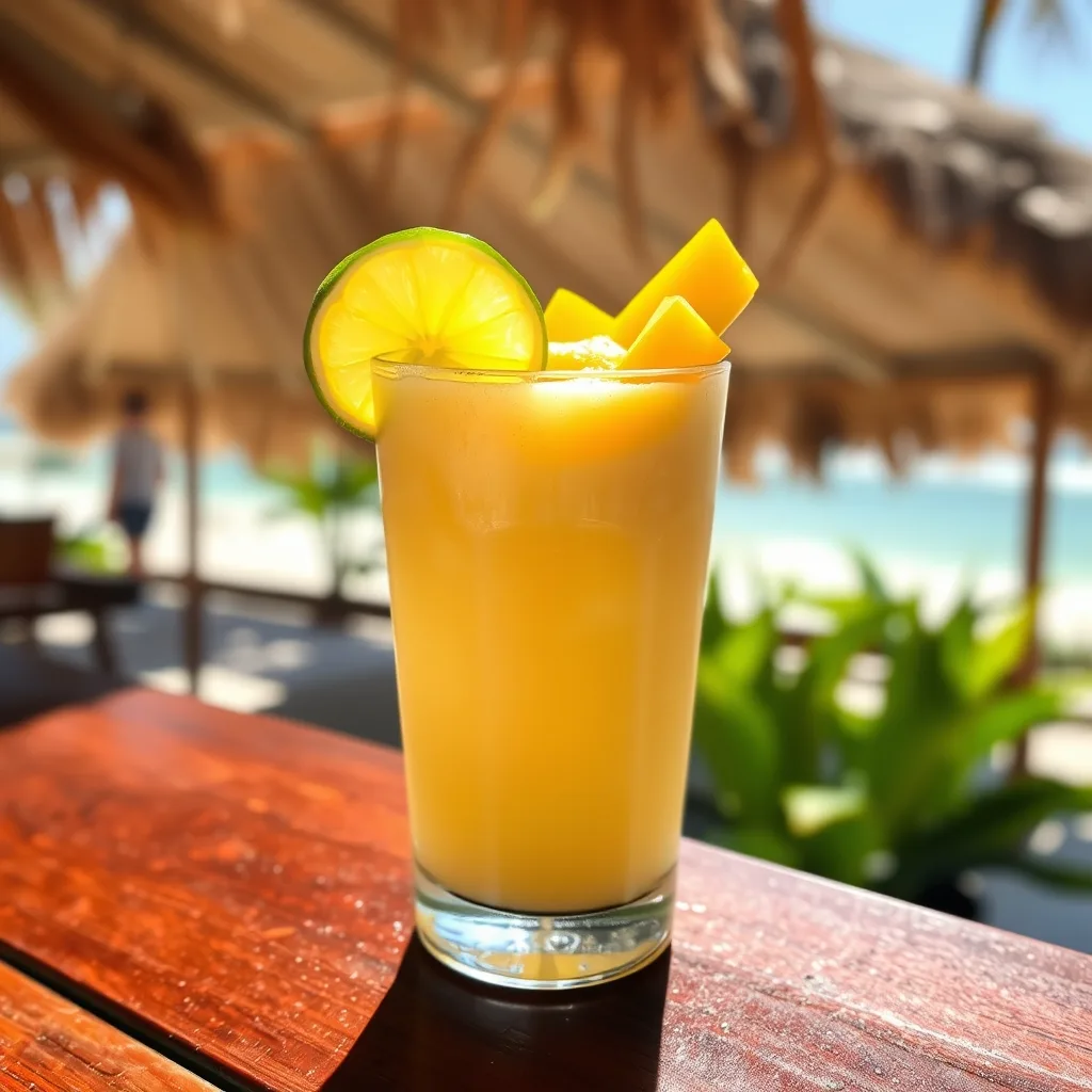 Blend 1.5 cups frozen mango with 1 cup full-fat coconut milk and the juice of 1 lime. The coconut milk provides fat for creaminess. The mango delivers sweetness and tropical flavor. The lime cuts through both and prevents the whole thing from tasting heavy. Serves two. Takes 45 seconds.