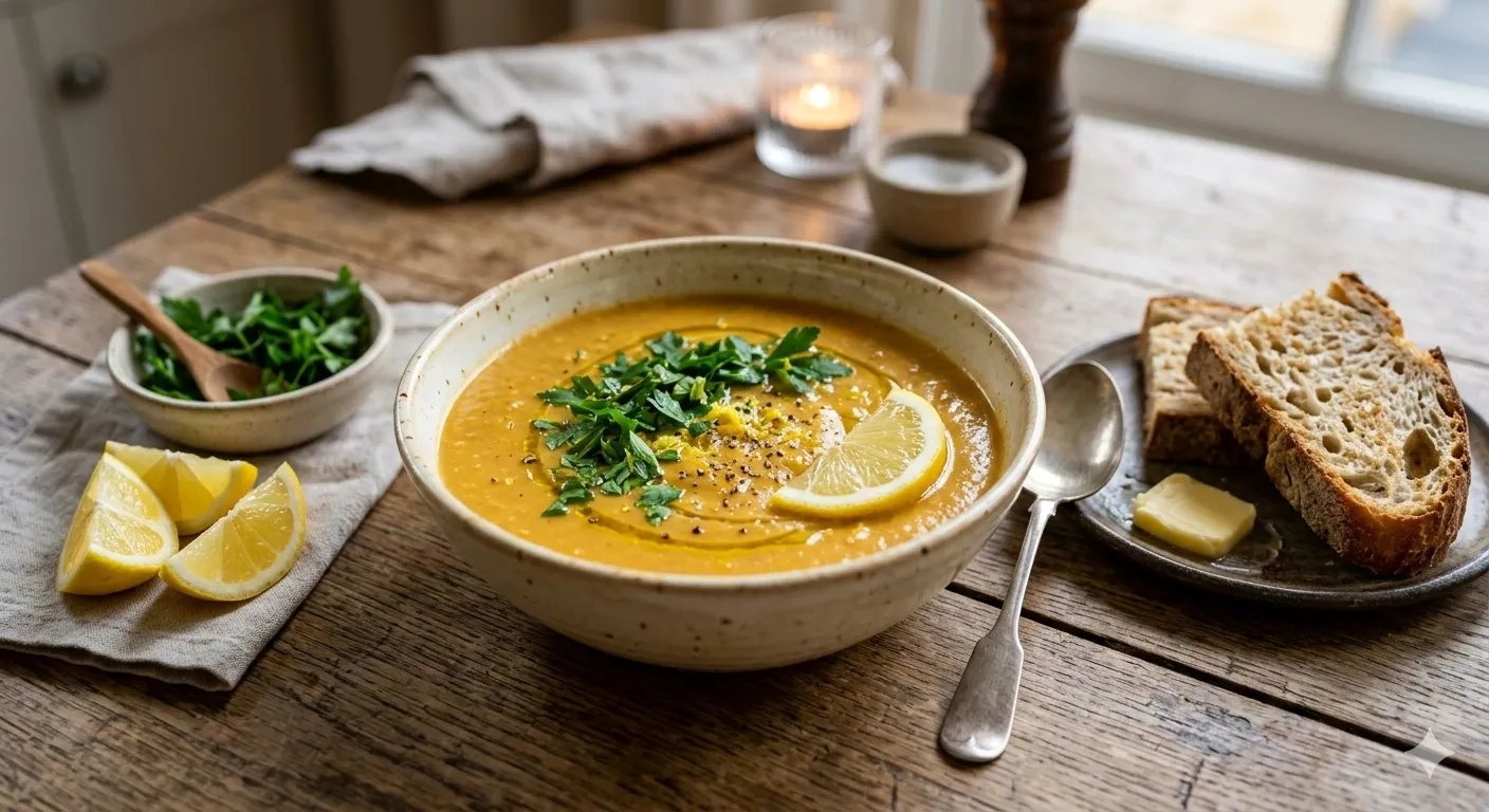 1. Classic Red Lentil Soup with Lemon