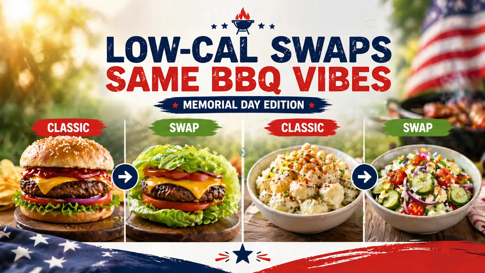 Memorial Day is the official start of BBQ season. But this year, you do not have to choose between enjoying the celebration and eating well. Every classic dish on your backyard table has a lighter, just-as-delicious version. This collection brings you 20 low calorie swap Memorial Day recipes that keep all the flavor and lose the guilt. Fire up the grill and get ready to impress.