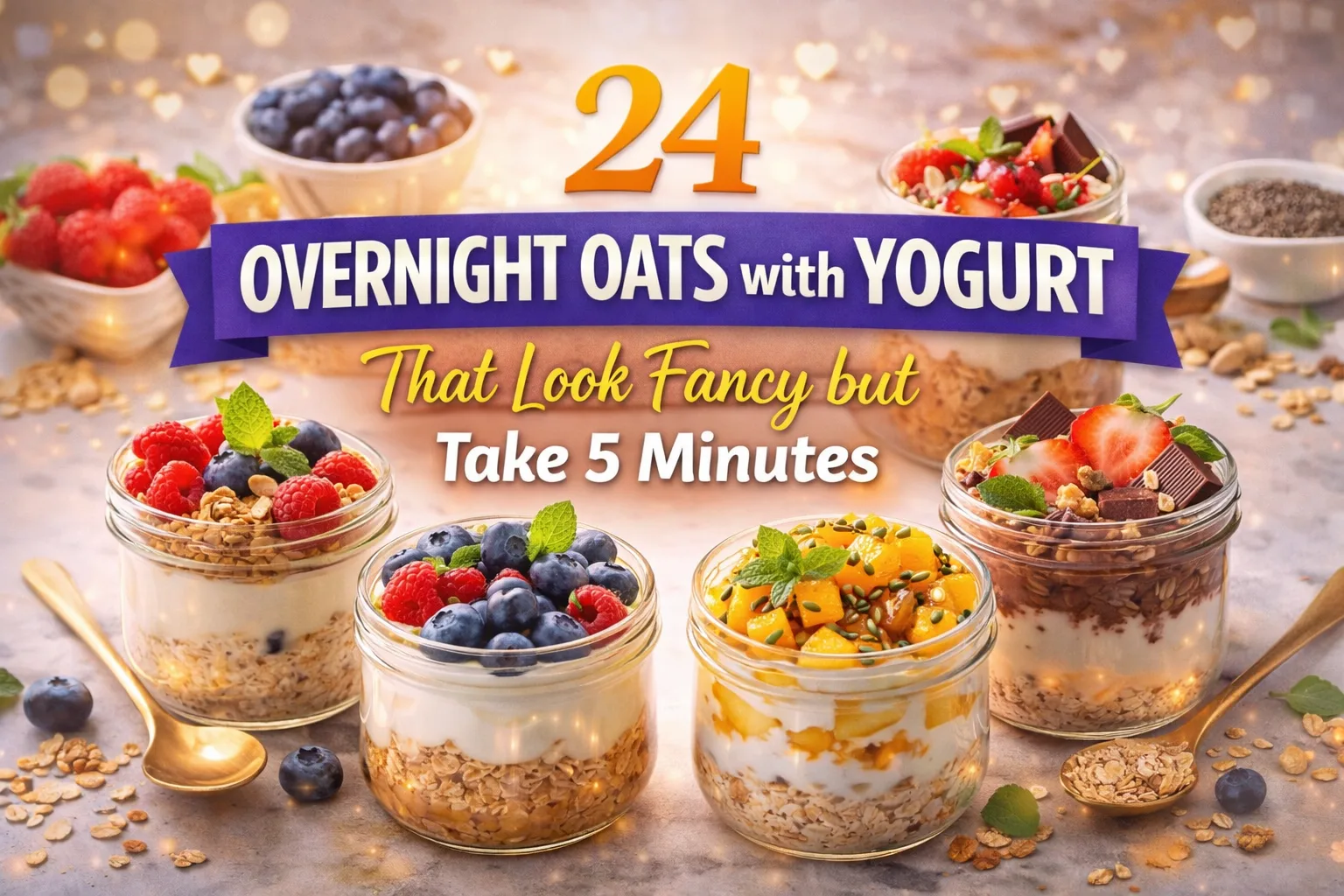 This guide gives you 24 recipes. All of them take five minutes or less to prepare. All of them use yogurt as a base ingredient. And every single one looks far more impressive than the effort involved. Whether you are new to overnight oats or you have been making them for years and need fresh inspiration, this is the most complete resource you will find.