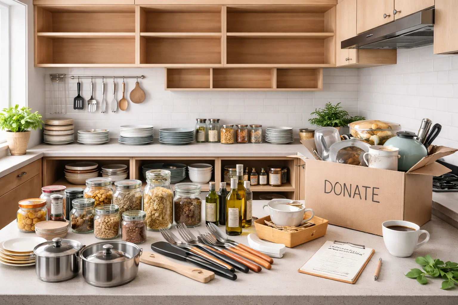The right move is an edit first. Pull everything out of your cabinets and ask one question: do you actually use this? Not “could I use it” or “did I use it once in 2019” actually use it, regularly. Studies from the National Association of Professional Organizers consistently show that most households use about 20 percent of their kitchen items 80 percent of the time. You are storing a lot of dead weight.