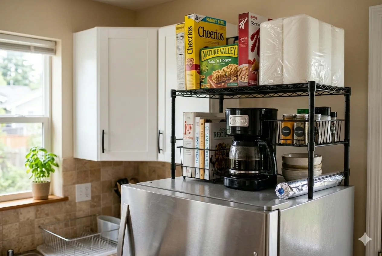 Every small kitchen has underused vertical real estate. The walls above your counter, the inside of cabinet doors, the gap between your refrigerator top and the ceiling these are essentially free storage that most people walk past every single day.
